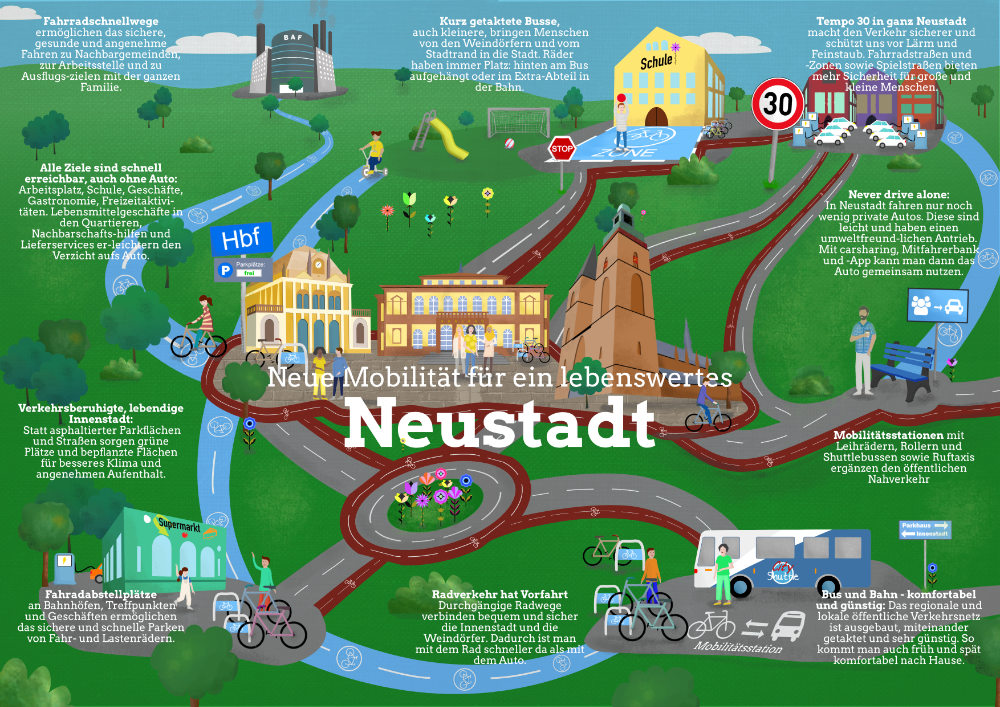 Die Stadtkarten wurden für verschiedene Wahlkampfveranstaltungen genutzt. Die Texte waren größtenteils vorgegeben, ich habe nur stilistische Anpassungen vorgenommen. Die Grafiken habe ich als Vektorgrafiken erstellt, damit so viel Inhalt auf so kleinem Raum Platz findet.